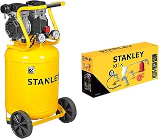 STANLEY - Vertikaler Kompressor Siltek 1,3 PS. & Zubehör für Luftkompressoren, Airtoolkit 8 Stück, 9045671STN