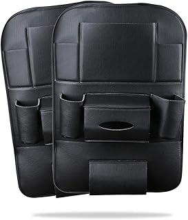 Ergocar 2 Packs PU-Leder-Auto-Organisatoren, Rücksitz-Schutz-Abdeckung, Kick-Matte Auto-Rücksitz-Organisator mit 10,1"iPad/Tablet-Halter Multi Taschen einschließlich Tissue Box - Schwarz