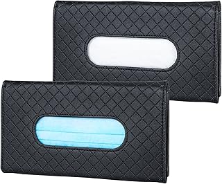 OHMOTOR Auto Tissue Halter, 2 Stücke PU Leder Auto Taschentuchbox Maskenhalter, Serviettenhalter Tissue Box Halter für Auto Sonnenblende Tücherbox Auto Rücksitz Rückenlehne Autozubehör (Schwarz)