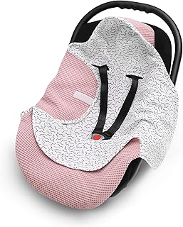 EliMeli Einschlagdecke für Babyschale 100% Baumwolle - Leichte Baby Decke für Autositz aus Waffelstoff und Musselin für den Sommer und Frühling, universal z.B. Maxi Cosi (Rosa - Zygzak)