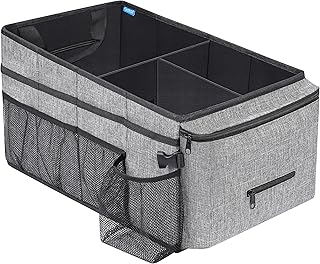 Auto Organizer für Vorne und Rücksitz, Beifahrersitz, Auto Organizer Kinder mit Mehrere Taschen Getränkehaltern, Verstellbaren Trennwänden, Faltbar Sitz Organizer Auto für Spielzeug, Bücher, Snacks