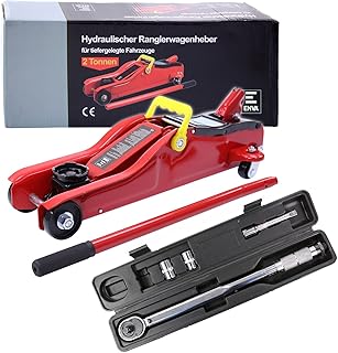 Hydraulischer Wagenheber 2t Rangierwagenheber Hubhöhe 85 – 330 mm + Drehmomentschlüssel 1/2 Zoll Antrieb Vierkant inkl. Verlängerung 110 mm Stecknüsse 17 mm und 19 mm